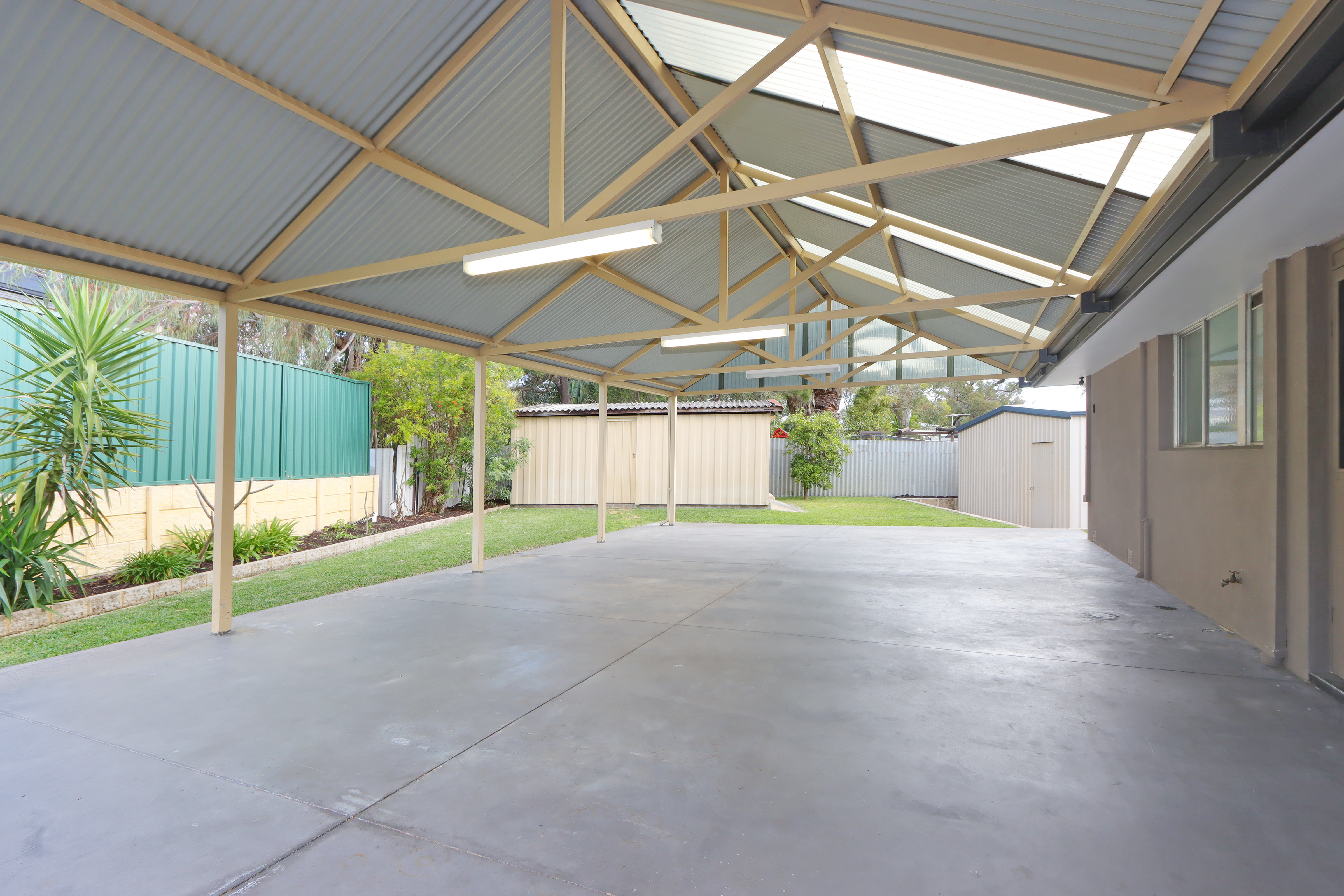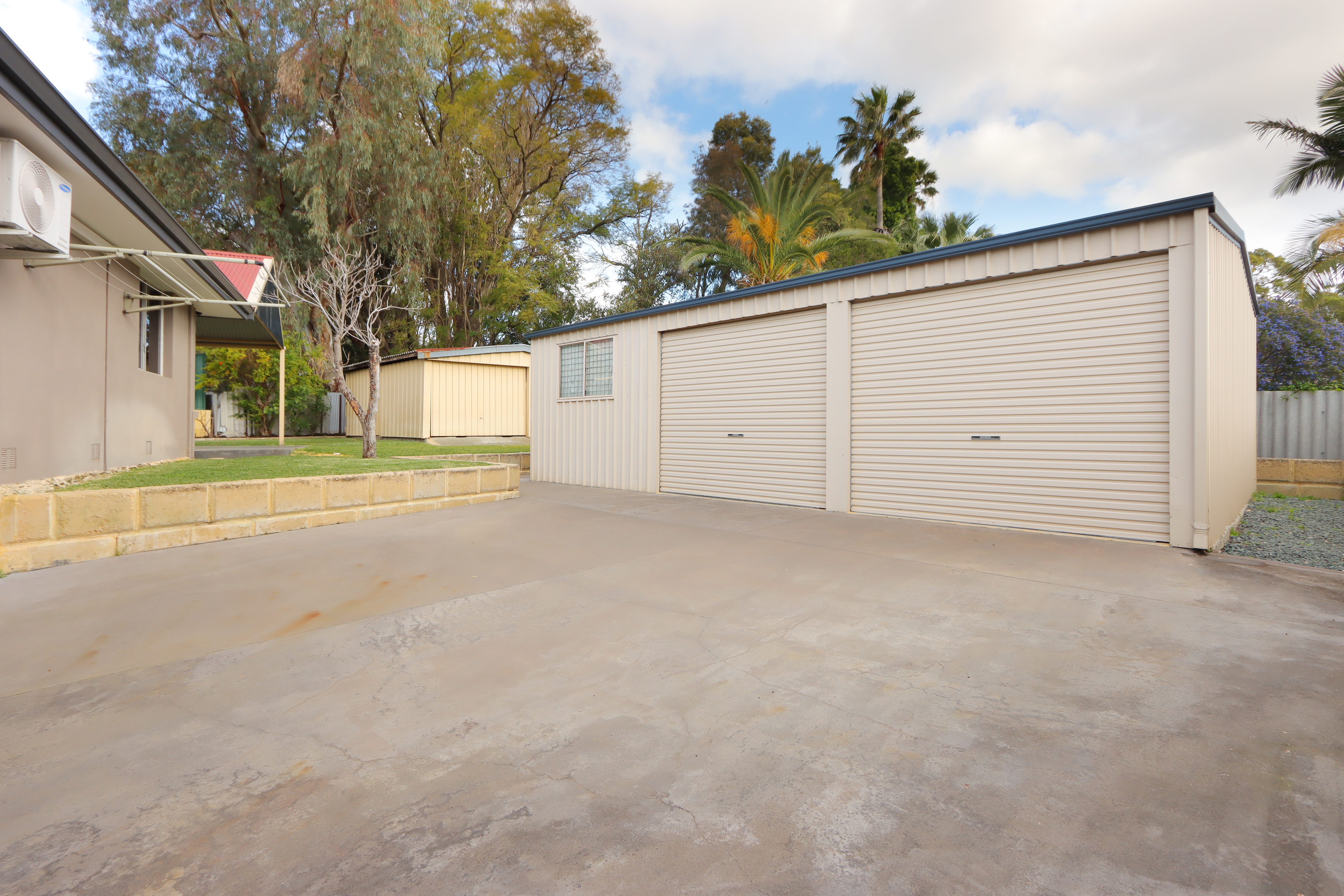• Two sheds: Shed 1 comes with double roller doors, can be converted into a car garage; Shed 2 is suitable for storing your gardening tools