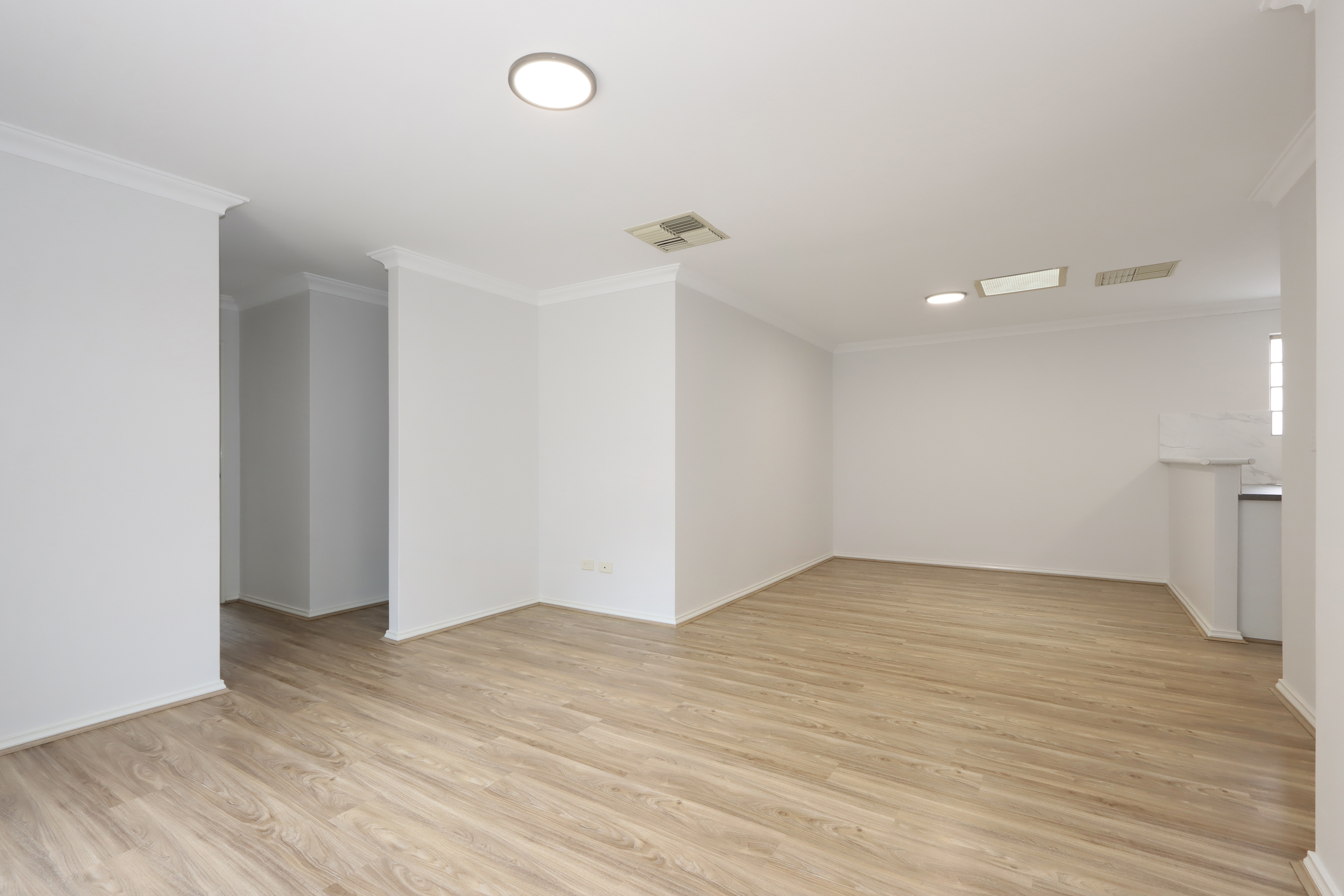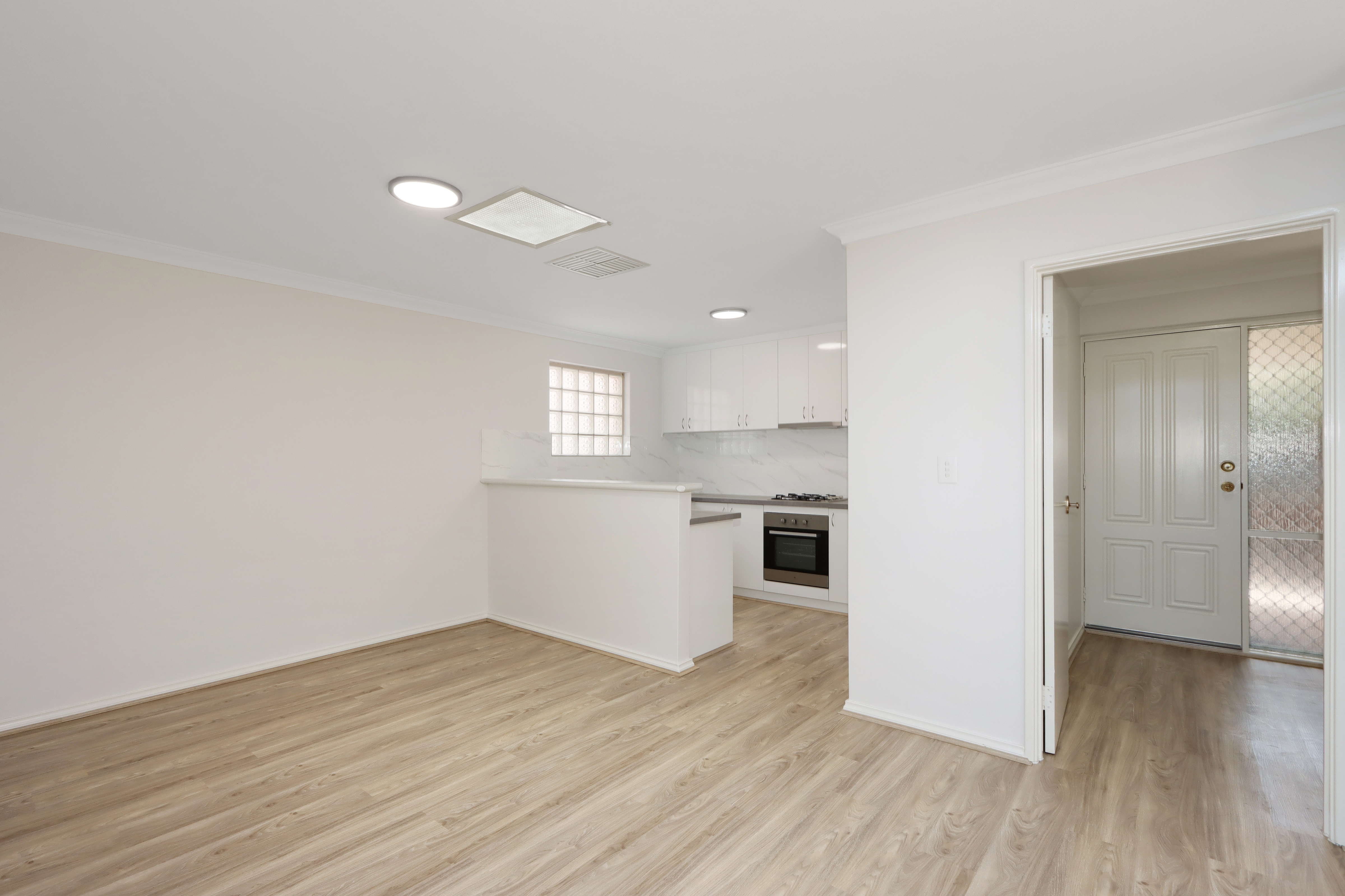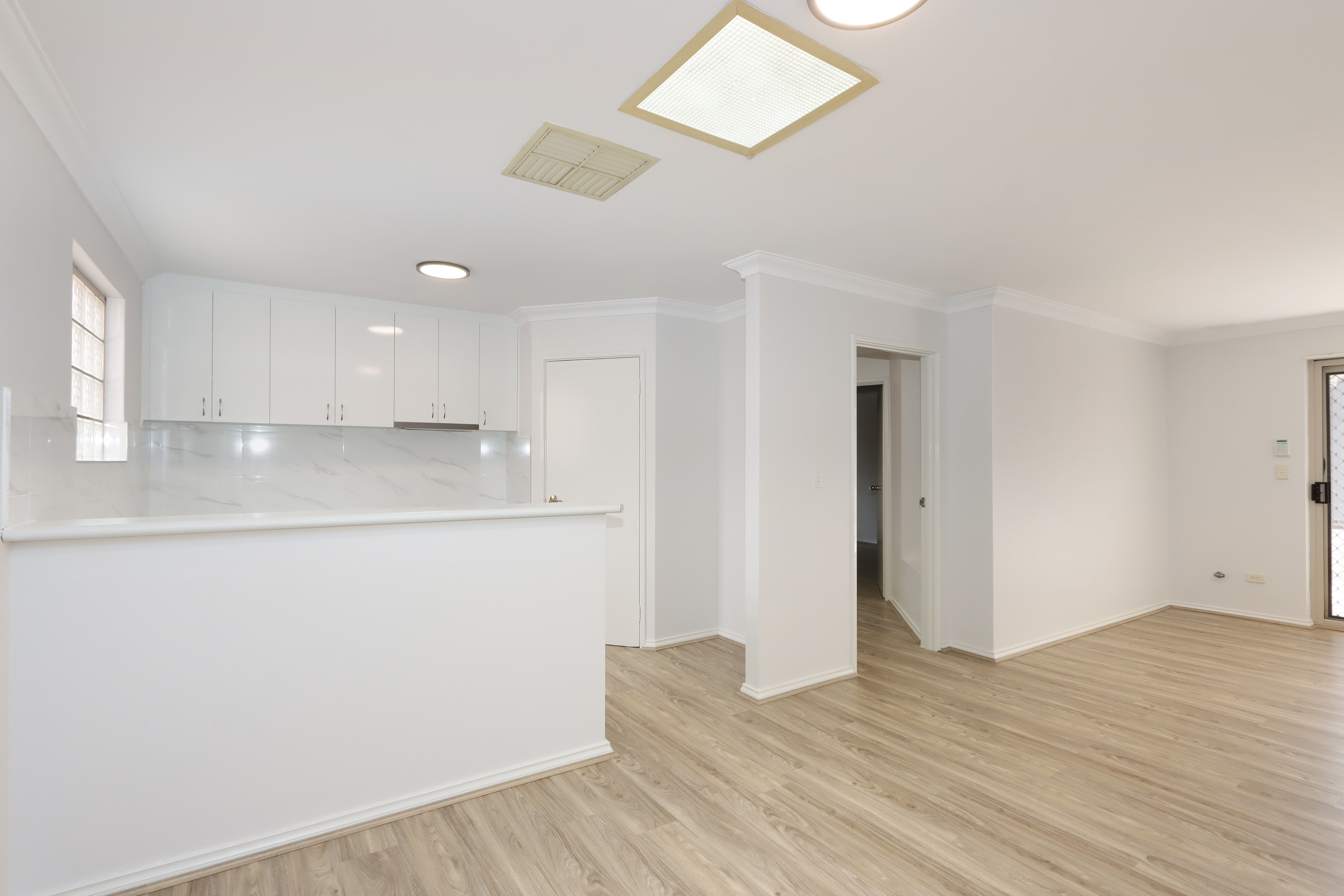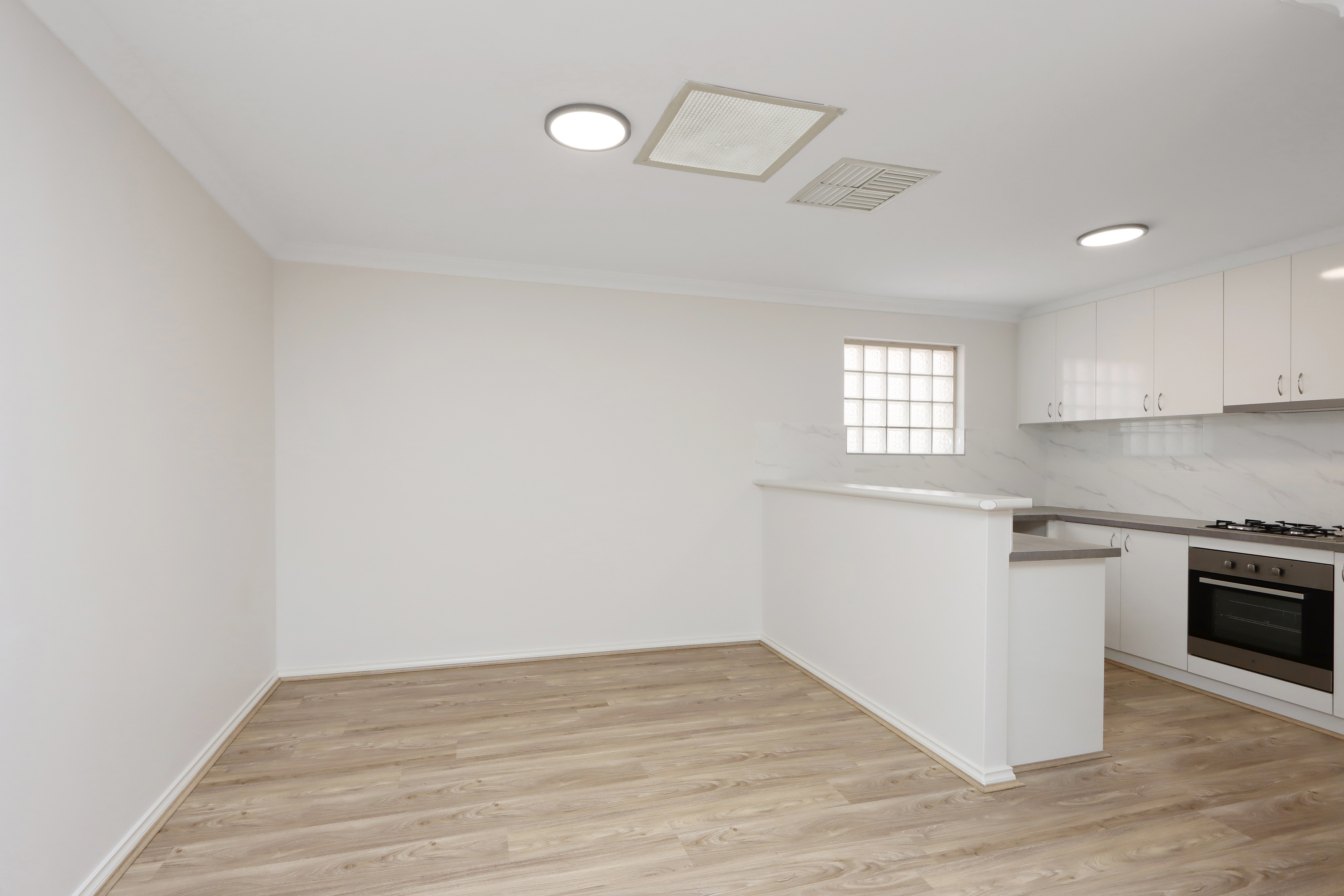 The brand-new kitchen is the heart of the house, perfectly fitted rangehood cupboard, bright off-white splashback and the light brown laminated bench-top are just matching the quality of the house. Not to mention the stainless-steel appliances and the oven, all brand spanking new for the new owner.