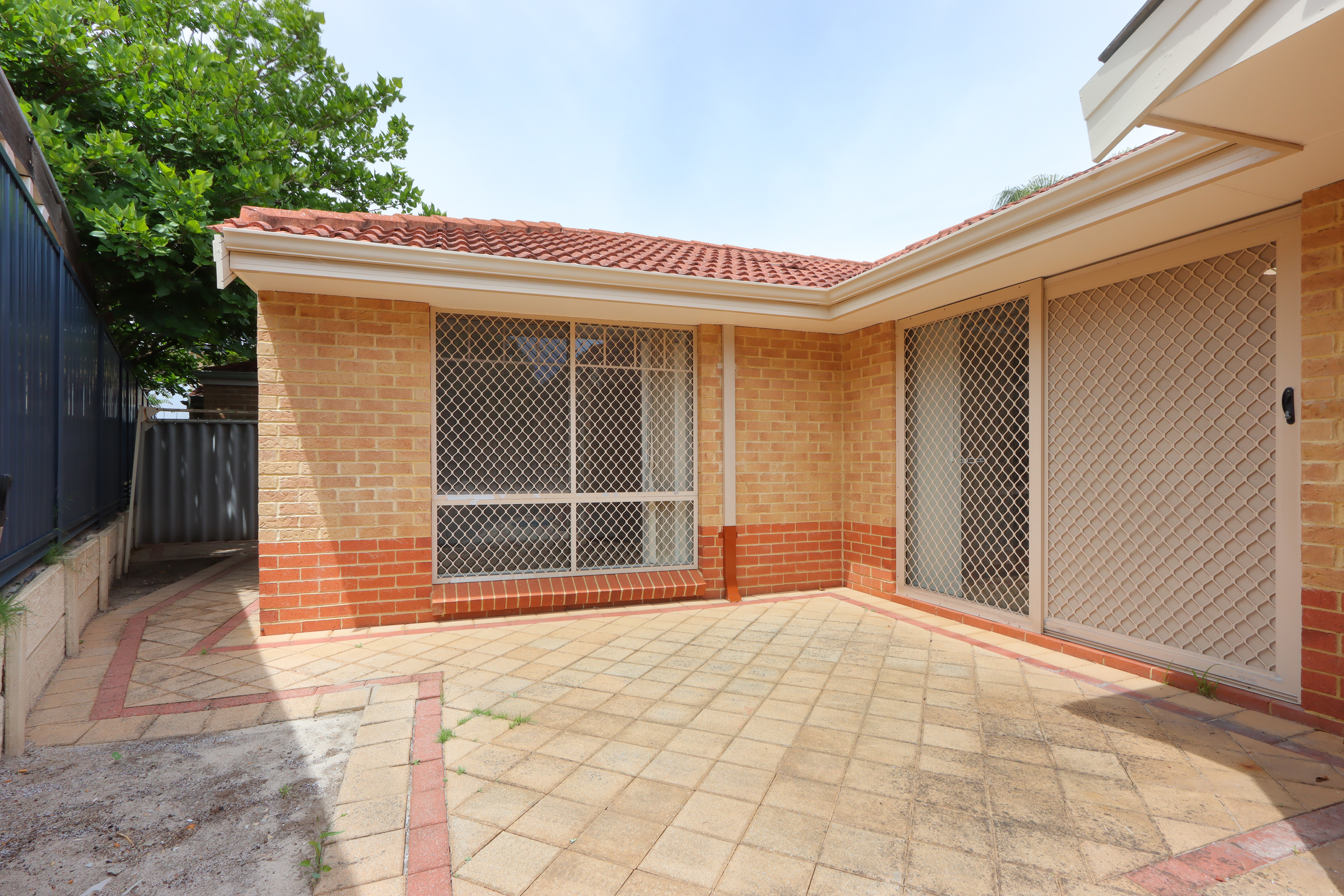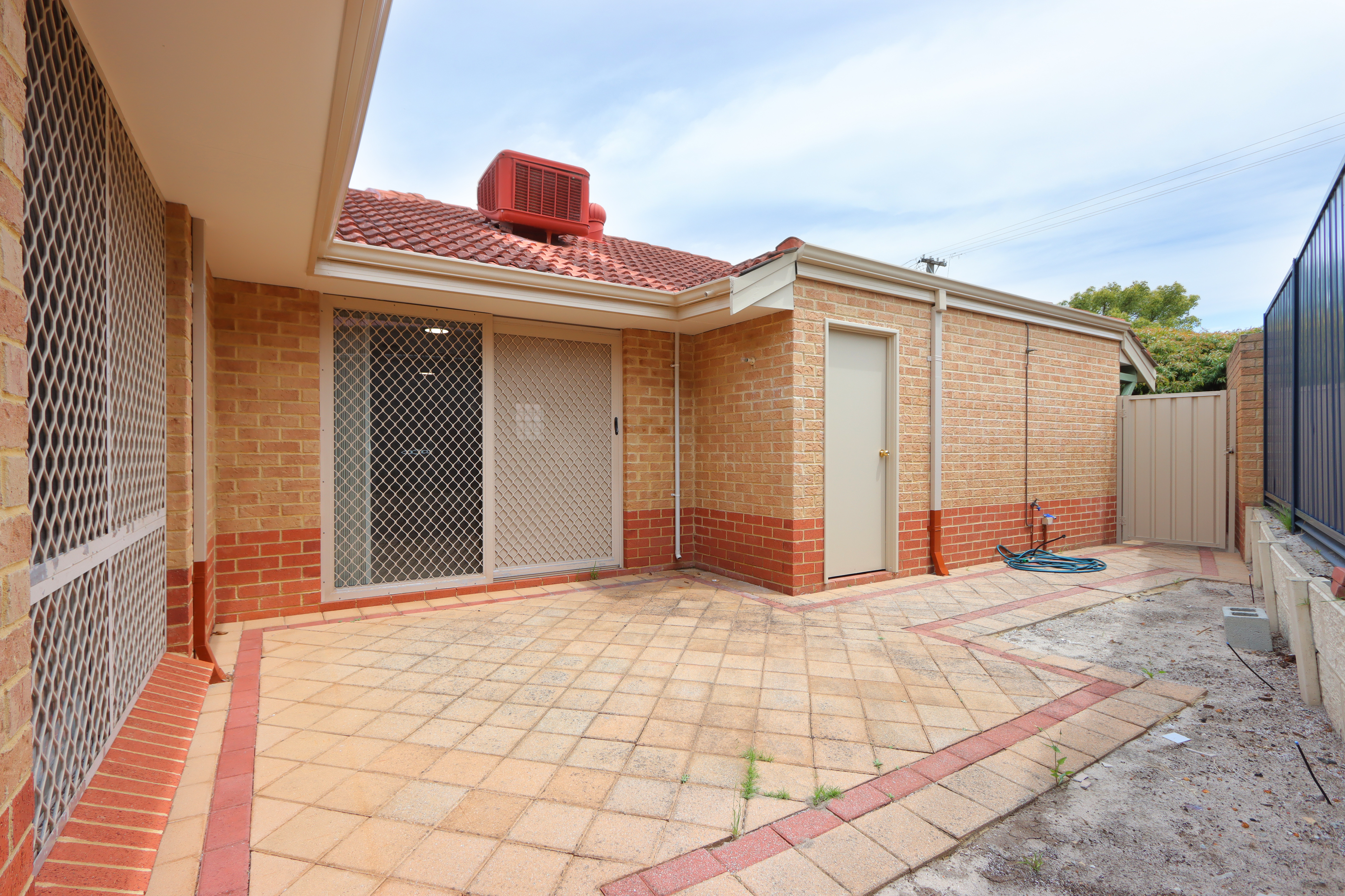 • The paved backyard and small easy-care front garden